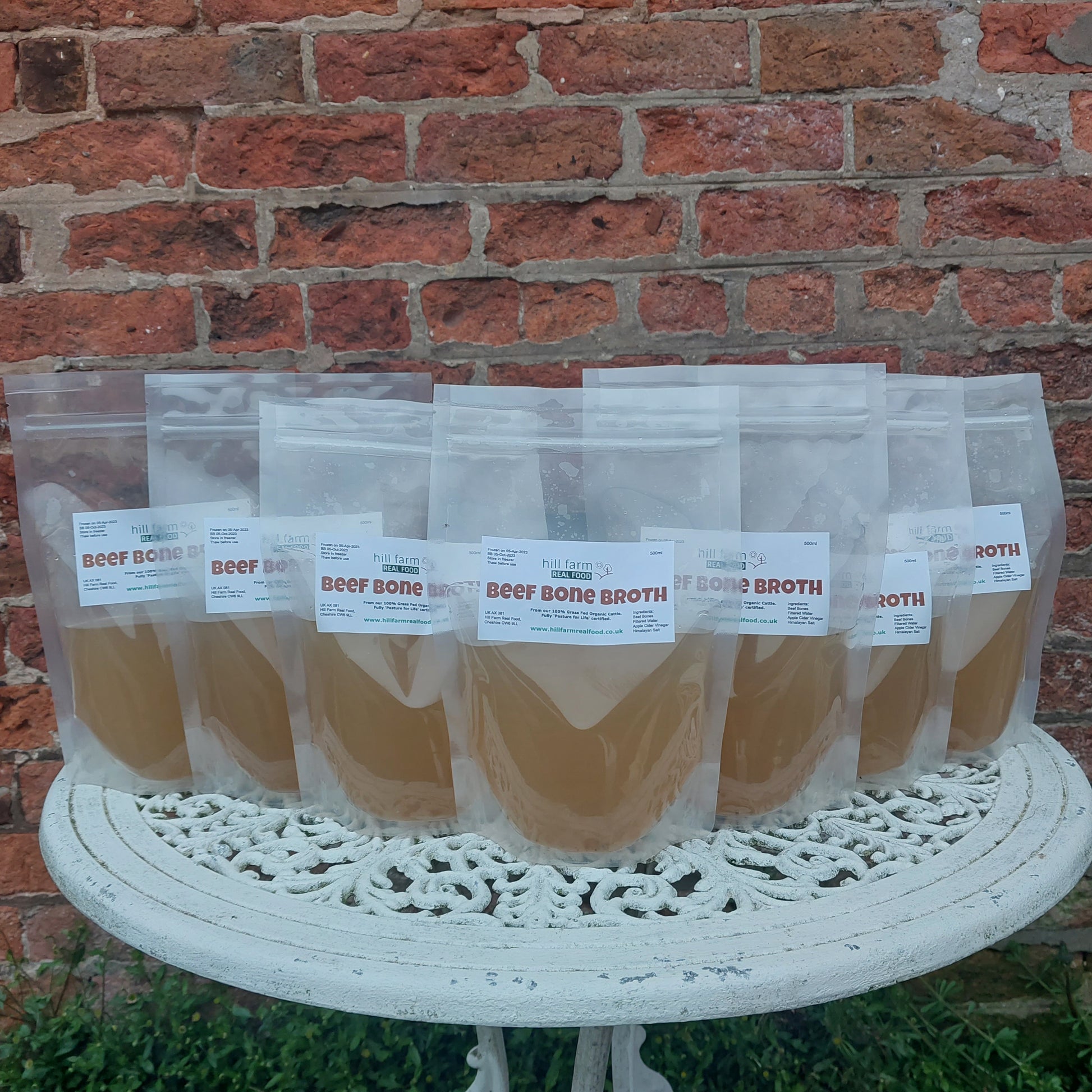 Hill Farm BEEF BONE BROTH 600ml x 7 pouch bundle (INCLUDES COURIER DELIVERY)